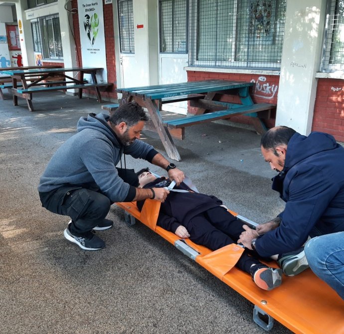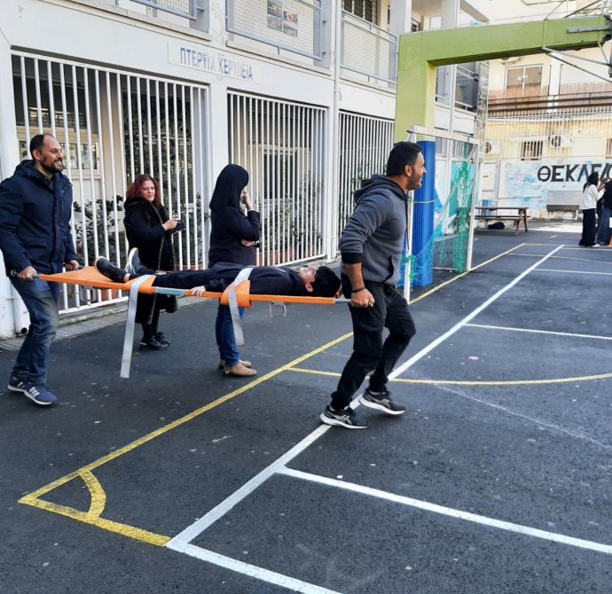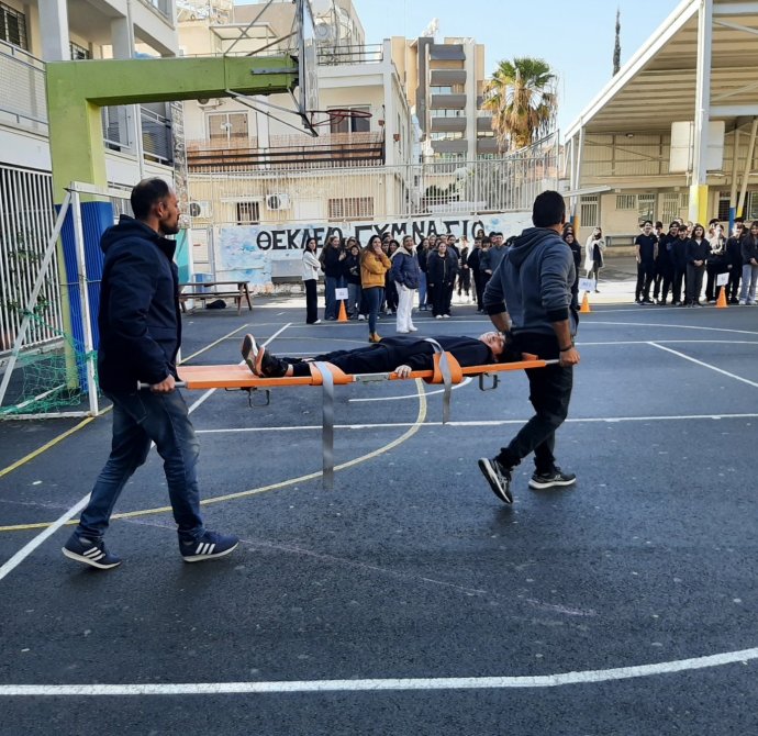 Στις 17 Δεκεμβρίου 2024 η Επιτροπή Ασφάλειας και Υγείας και Πολιτικής Άμυνας πραγματοποίησε άσκηση για την αντιμετώπιση του σεισμού. Οι μαθητές/τριες, οι εκπαιδευτικοί και το προσωπικό του σχολείου μας ακολούθησαν τις οδηγίες που δόθηκαν από την Επιτροπή Πολιτικής Άμυνας. Σύμφωνα με το σενάριο της άσκησης, ένας τραυματίας μαθητής που βρέθηκε εγκλωβισμένος σε αίθουσα του σχολείου μεταφέρθηκε από τους τραυματιοφορείς σε ασφαλές μέρος, όπου του παρασχέθηκαν οι πρώτες βοήθειες.