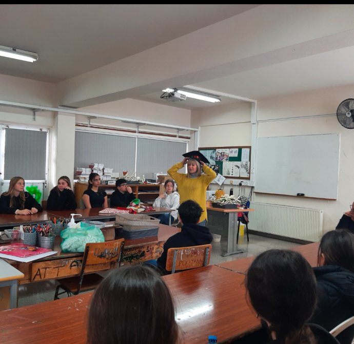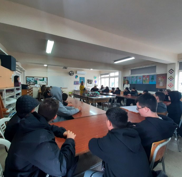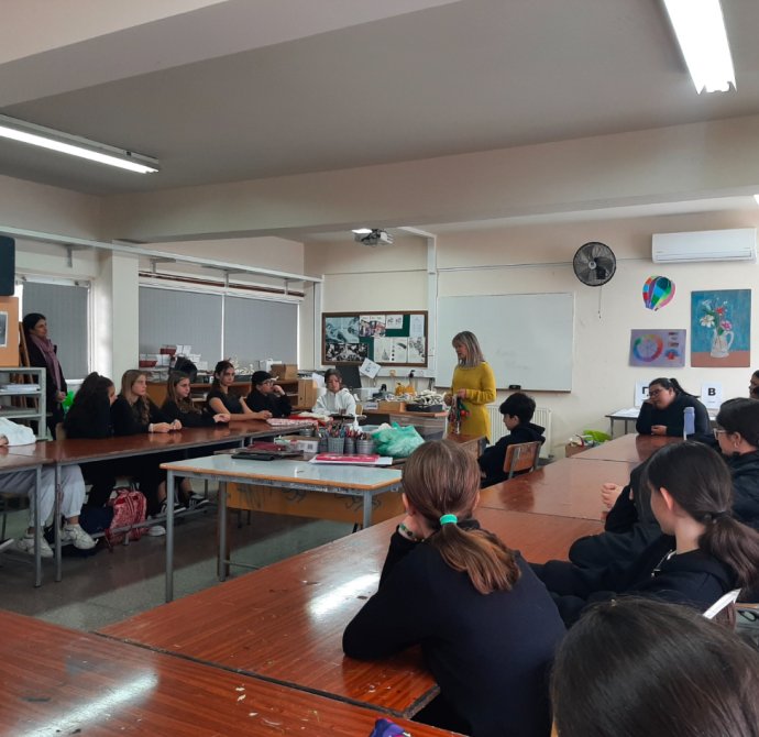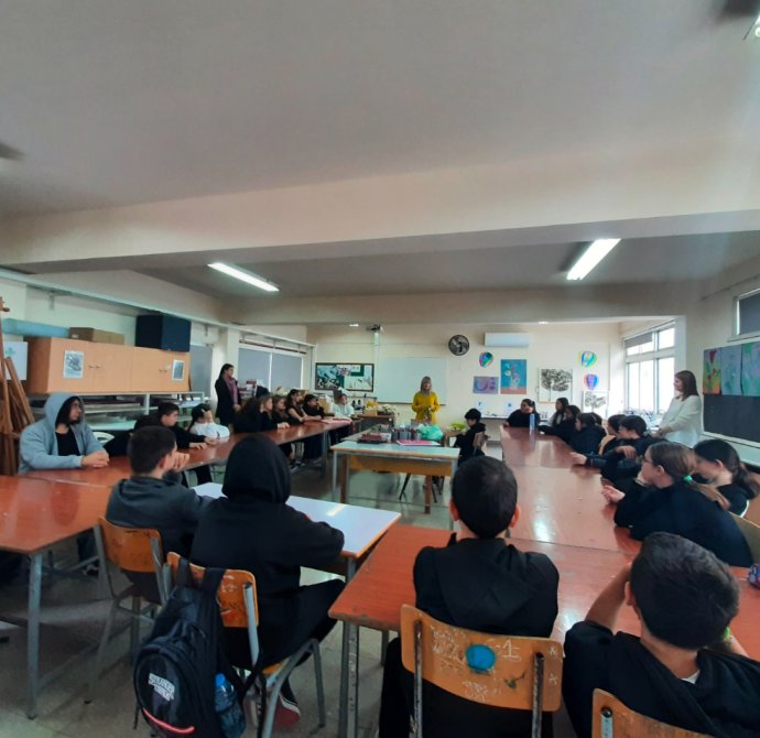 Επίσκεψη κ. Έλενας Περικλέους, Συντονίστρια Πολιτιστικής Παιδείας στο Υφυπουργείο Πολιτισμού της Κύπρου και Πρόεδρος του Κυπριακού Συνδέσμου Παιδικού Νεανικού Βιβλίου και ομάδας από τη βιβλιοθήκη του ΤΕΠΑΚ. Συμμετείχαν τα παιδιά του Α1 και Α2 στην αίθουσα Τέχνης.