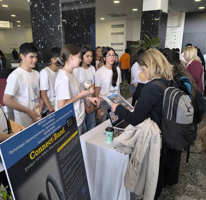 Φέτος, η ομάδα μας συμμετείχε με μεγάλη επιτυχία στον διαγωνισμό «ΙΔΕΟΔΡΟΜΙΟ» 2024–2025, στο πλαίσιο του Προγράμματος Δημιουργικότητας, Καινοτομίας και Επιχειρηματικής Ιδέας. Η ιδέα μας, το ConnectiBand, είναι ένα καινοτόμο βραχιόλι που δίνει έμφαση στην κοινωνική σύνδεση και όχι στην παρακολούθηση της υγείας, όπως τα περισσότερα smartwatches και fitness bands. Είναι πιο προσιτό, απλό στη χρήση, χωρίς περιττές λειτουργίες, και ιδανικό για μαθητές που επιθυμούν να ενισχύσουν τις διαπροσωπικές τους σχέσεις χωρίς περισπασμούς.
