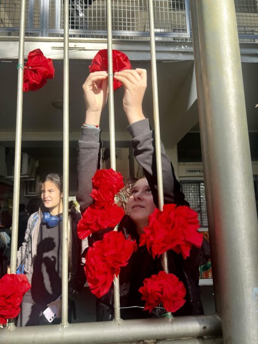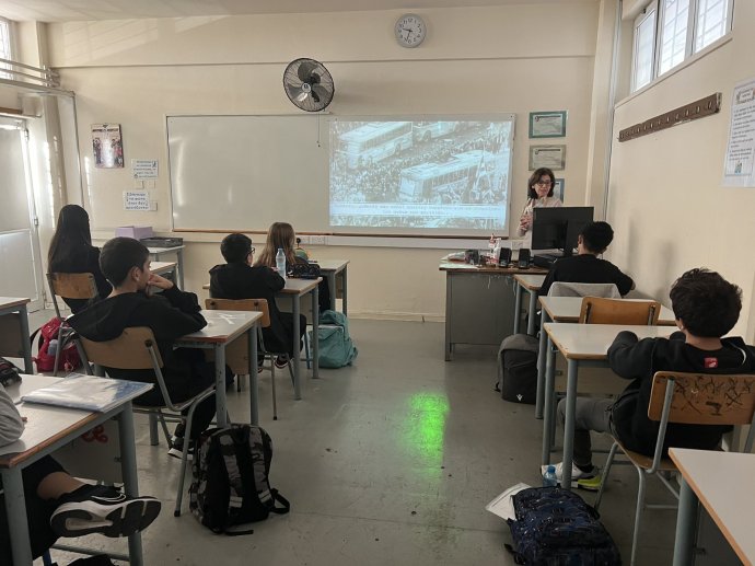 Στην ενδοτμηματική εκδήλωση που έγινε στις 18 Νοεμβρίου 2024, τιμήσαμε τη μνήμη των φοιτητών του Πολυτεχνείου που θυσιάστηκαν για την υπεράσπιση της Δημοκρατίας. Οι μαθητές/τριες παρακολούθησαν το αφιέρωμα και στη συνέχεια έφτιαξαν χάρτινα λουλούδια, τα οποία τοποθετήσαμε στην είσοδο του σχολείου σαν ελάχιστο φόρο τιμής σε όσους χάθηκαν εκείνη τη μέρα.