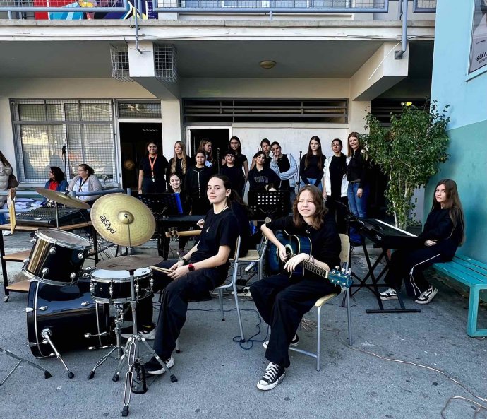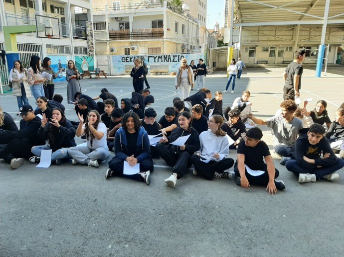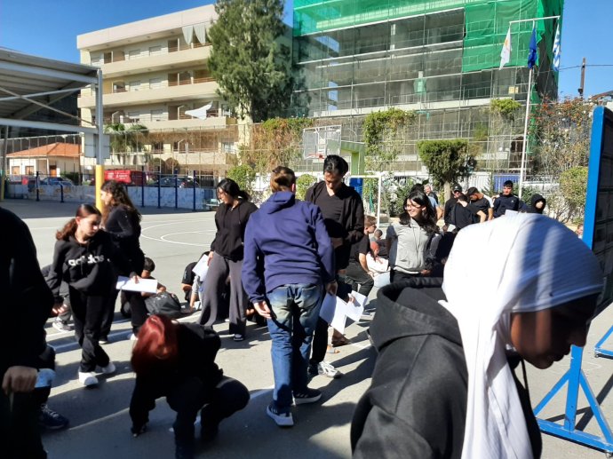 Στη συνέχεια συγκεντρωθήκαμε στην εσωτερική αυλή του σχολείου για να ακούσουμε τη χορωδία, ορχήστρα και μαέστρο μας να ερμηνεύουν το τραγούδι «Η Δική μου η Πατρίδα» σε στίχους της Τουρκοκύπριας Γιασίν Νεσιέ και μουσική του αείμνηστου Μάριου Τόκα. Το τραγούδι άγγιξε τις καρδιές όλων αφού δυστυχώς, οι πολεμικές συγκρούσεις που γίνονται σήμερα σε διάφορα μέρη του πλανήτη μας αναγκάζουν ανθρώπους να βιώνουν μια σκληρή πραγματικότητα ανάλογη με αυτή του 1974.